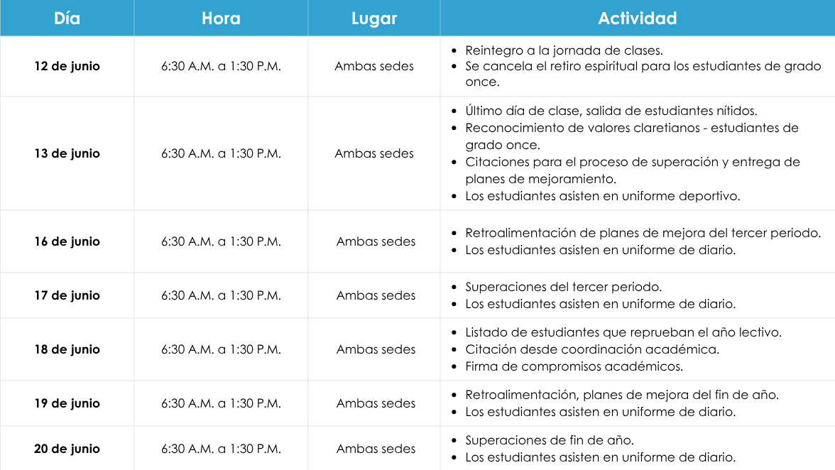 Por medio del presente comunicado, les compartimos algunas fechas e indicaciones con el fin de culminar de manera positiva el año escolar, les recomendamos leer con atención: